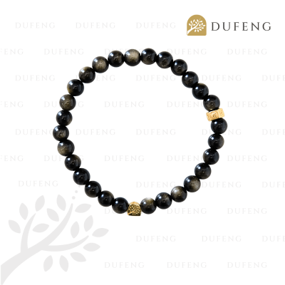 Dufeng – 6 Mantra Golden Obsidian Crystal Bracelet