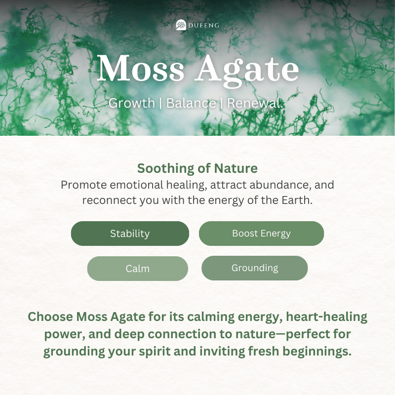 Green agate nya dari batu Aquatic, bisa meningkatkan keamanan dan kepercayaan diri, memberikan keseimbangan emosional, dan penerimaan. Aquatic dapat membawa energi kesuksesan dan dapat meningkatkan optimisme, kreativitas. Juga dikenal untuk membantu melepaskan kebiasaan lama dan tidak sehat.