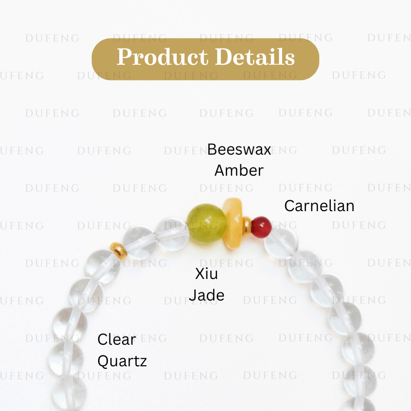 Awaken your inner glow with the Lustrous Bloom Bracelet, a radiant harmony of clarity, vitality, and grace. This elegant piece features: