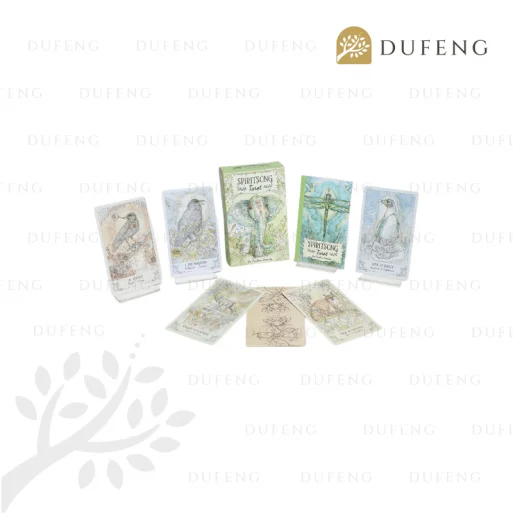 This Spiritsong deck is a melding of two traditions of divination: one in which animals are seen as guides between our world and the spirit world, and one that uses 78 cards as a tool to connect with our highest self. Each animal was specifically selected based upon Shamanic and Native American symbolism, merging each animal’s unique power with classic tarot practices. For example, the Spiritsong animal, Raven, has attributes such as ‘creation’ that parallels some of the same symbolic tarot attributes of the traditional Magician card, which is why the Raven is the animal representing that card.